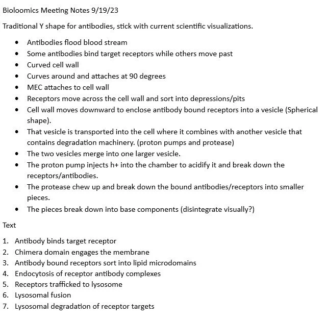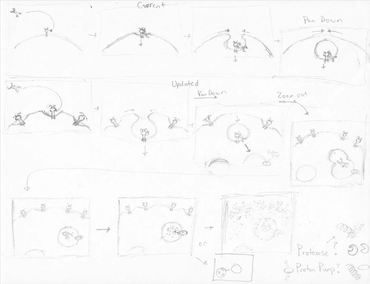 The process began by meeting with the Subject Matter Expert (SME) to create a storyboard for the slide deck. After prioritizing which information was most important and mapping out the slides during the first meeting, I made a prototype slide deck and returned for a meeting with the SME and CEO. The CEO approved the design, but was also interested in a public facing animation that could showcase the mechanism of action for their antibody treatment.